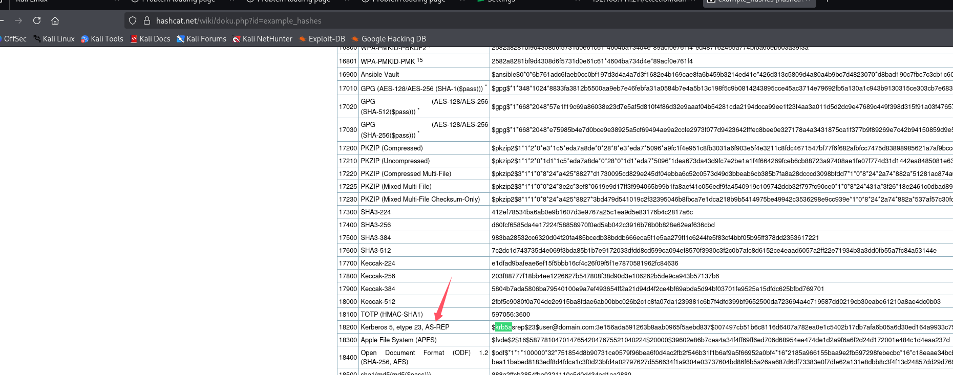 Looking at the Hashcat Examples Wiki page, what type of Kerberos hash did we retrieve from the KDC? (Kerberos 5, etype 23, AS-REP)