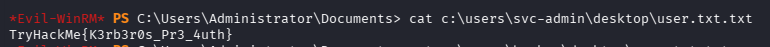 svc-admin(TryHackMe{K3rb3r0s_Pr3_4uth})