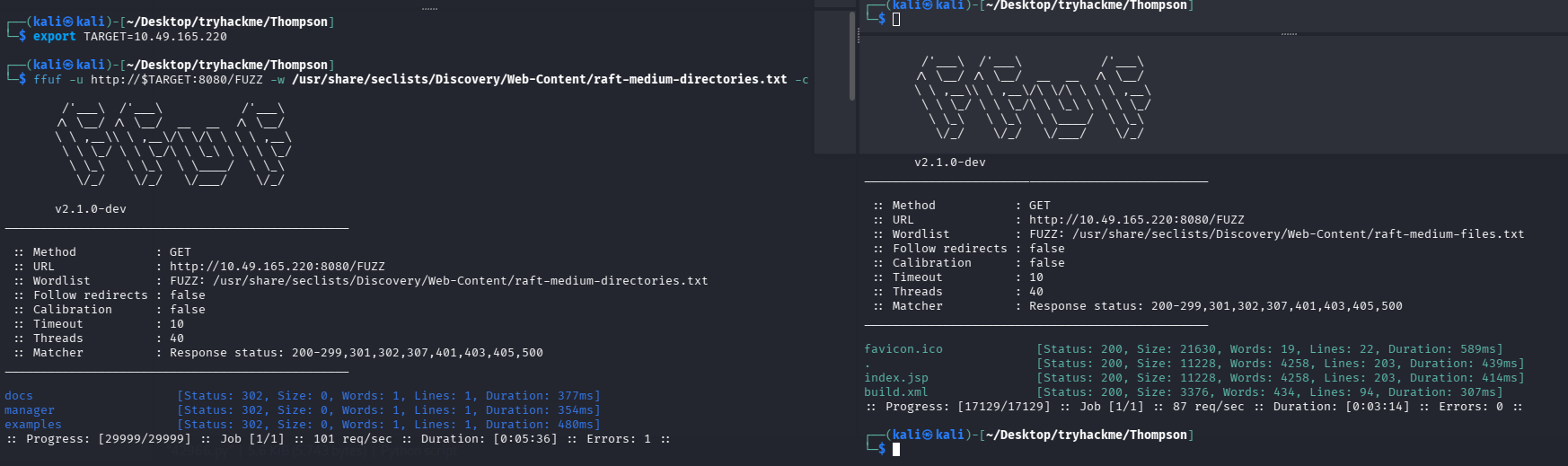 ffuf -u http://$TARGET:8080/FUZZ -w /usr/share/seclists/Discovery/Web-Content/raft-medium-directories.txt -c