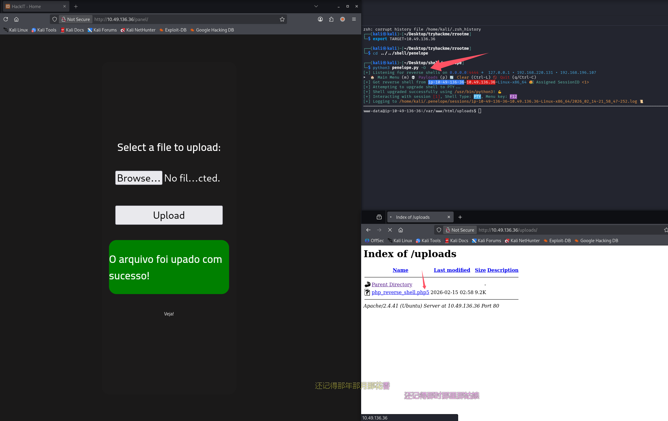 思路:php 站点,存在文件上传,且上传目录暴露,直接上传 php reverse shell,penelope 开监听,访问触发反弹 shell