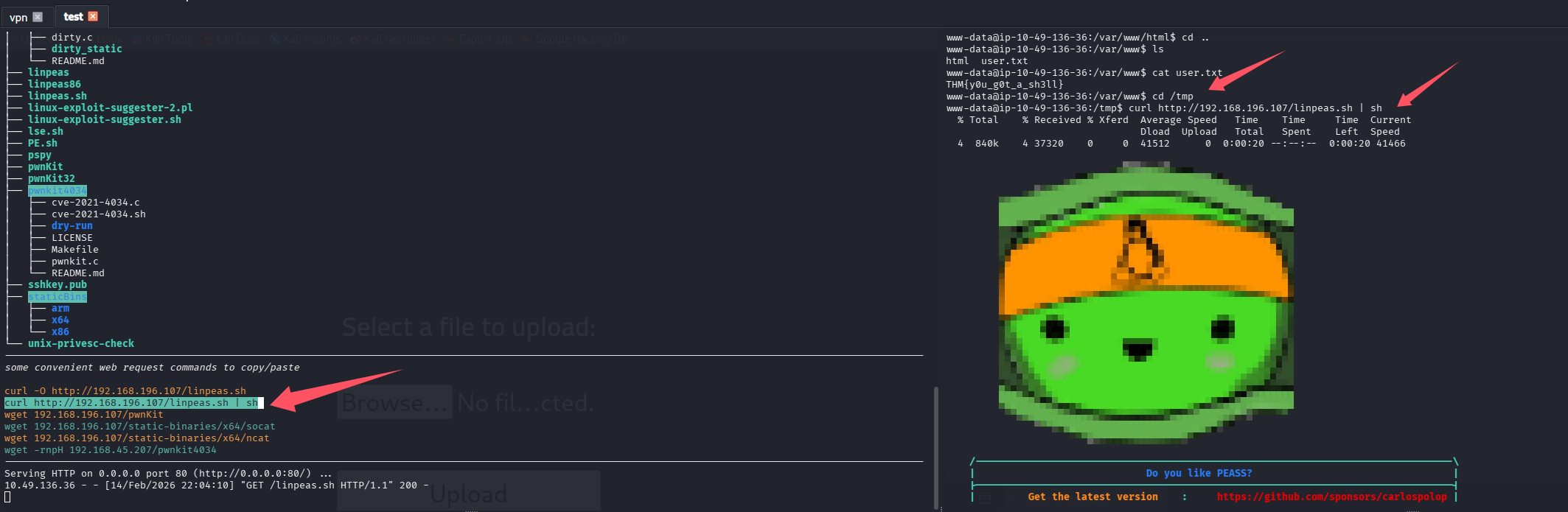 lpe 开提权辅助服务,靶机 shell 内拉取并执行 linpeas