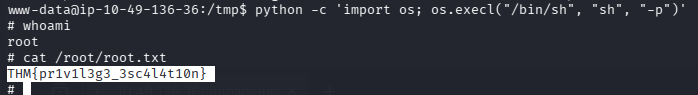 问题 7:root.txt(THM{pr1v1l3g3_3sc4l4t10n})