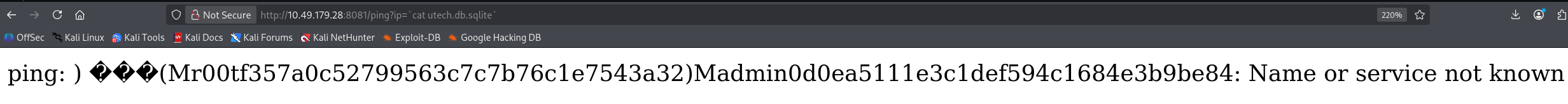 问题 6:There is a database lying around, what is its filename?(utech.db.sqlite)