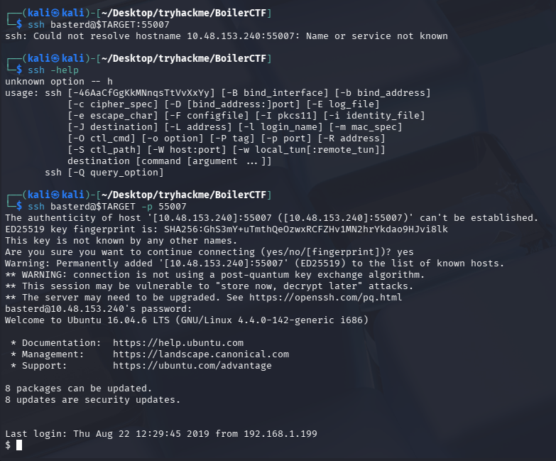 泄露 ssh 凭证:basterd/superduperp@$$,尝试 ssh 到目标 55007 端口