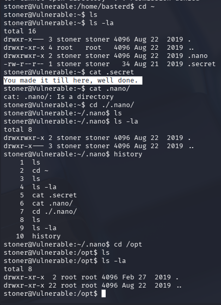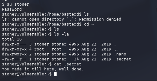 查看一下,发现 stoner 凭证 stoner/superduperp@$$no1knows