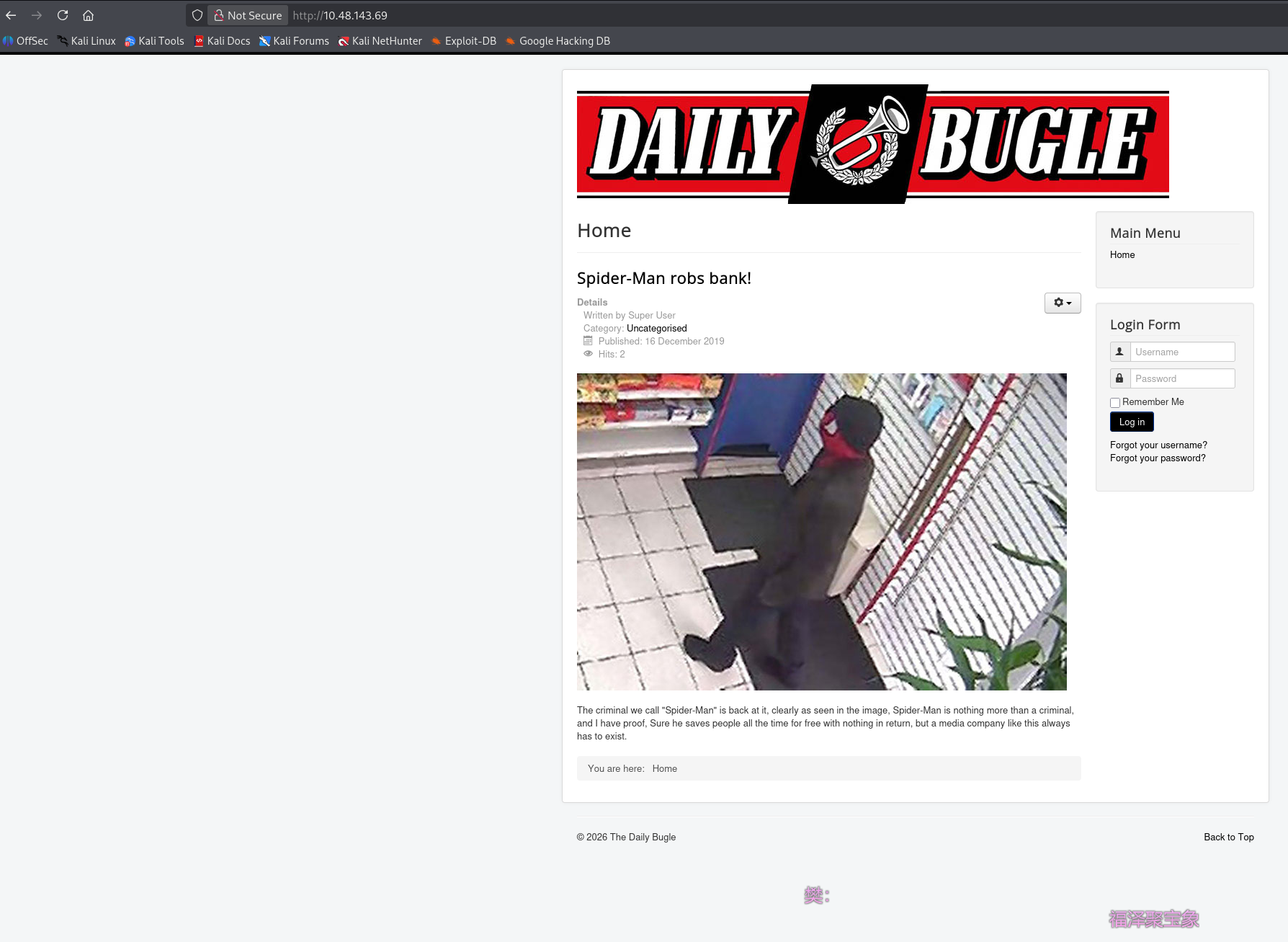 问题 1:Access the web server, who robbed the bank?(SpiderMan)就在页面上