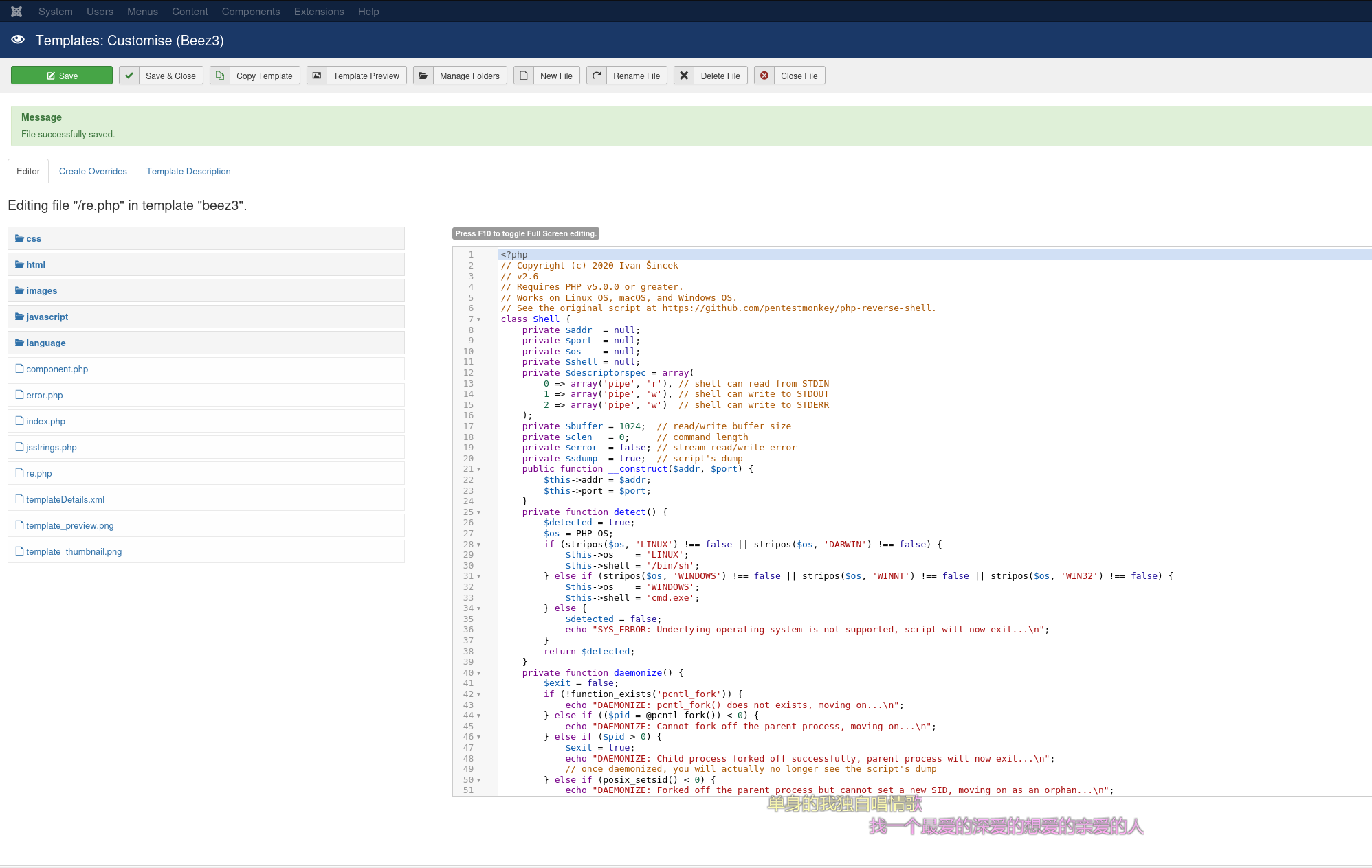 ssh 连不上,那就直接登录后台,模板处能够上传 php 文件,上传一个反向 shell
