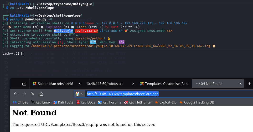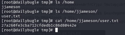 - 后来查找了一些别人写的 wp,发现这题的用户 flag 应该是通过网站目录下读取配置文件,拿到数据库的密码,尝试利用这个密码切 jjameson 用户来完成的,这里还是不够细心,OSCP 考试中应该不存在提权到 root 后才拿到用户 flag,肯定是有一条拿用户权限的路线的