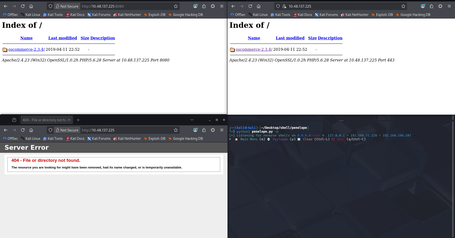 可以发现 8080 和 443 都挂着 oscommerce-2.3.4