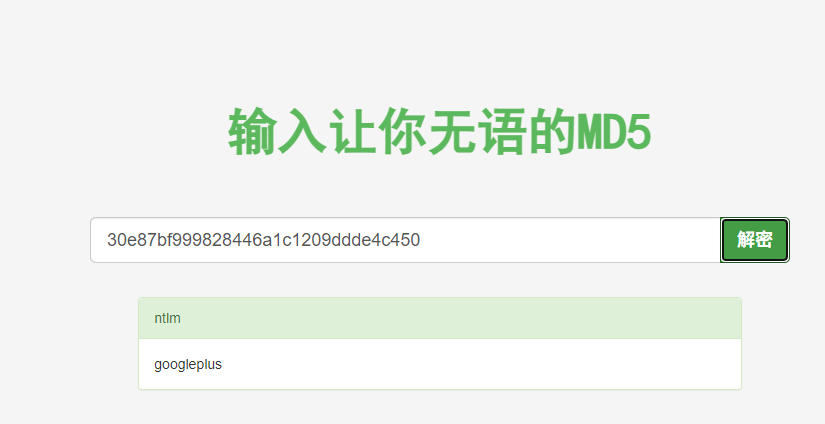 Hash NTLM: 30e87bf999828446a1c1209ddde4c450