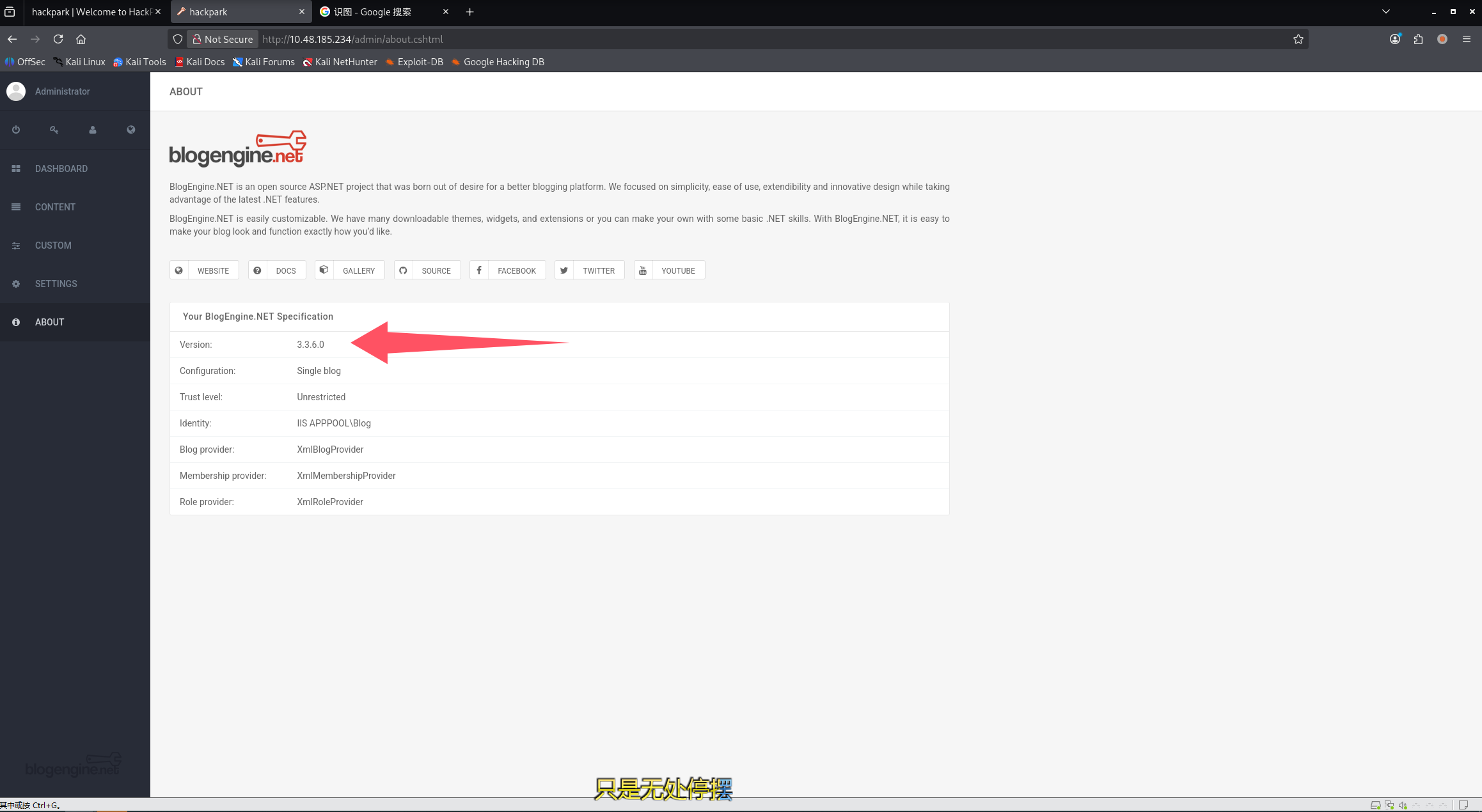 这里可以回答第四个问题:Now you have logged into the website, are you able to identify the version of the BlogEngine?(3.3.6.0)