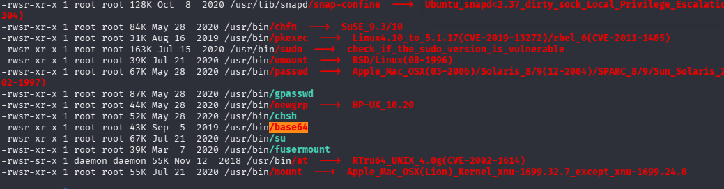 # 获取/etc/shadow,虽然没有权限但是可以利用base64的SUID提权