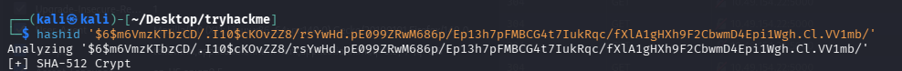 echo '$6$m6VmzKTbzCD/.I10$cKOvZZ8/rsYwHd.pE099ZRwM686p/Ep13h7pFMBCG4t7IukRqc/fXlA1gHXh9F2CbwmD4Epi1Wgh.Cl.VV1mb/' > hash.txt