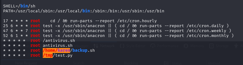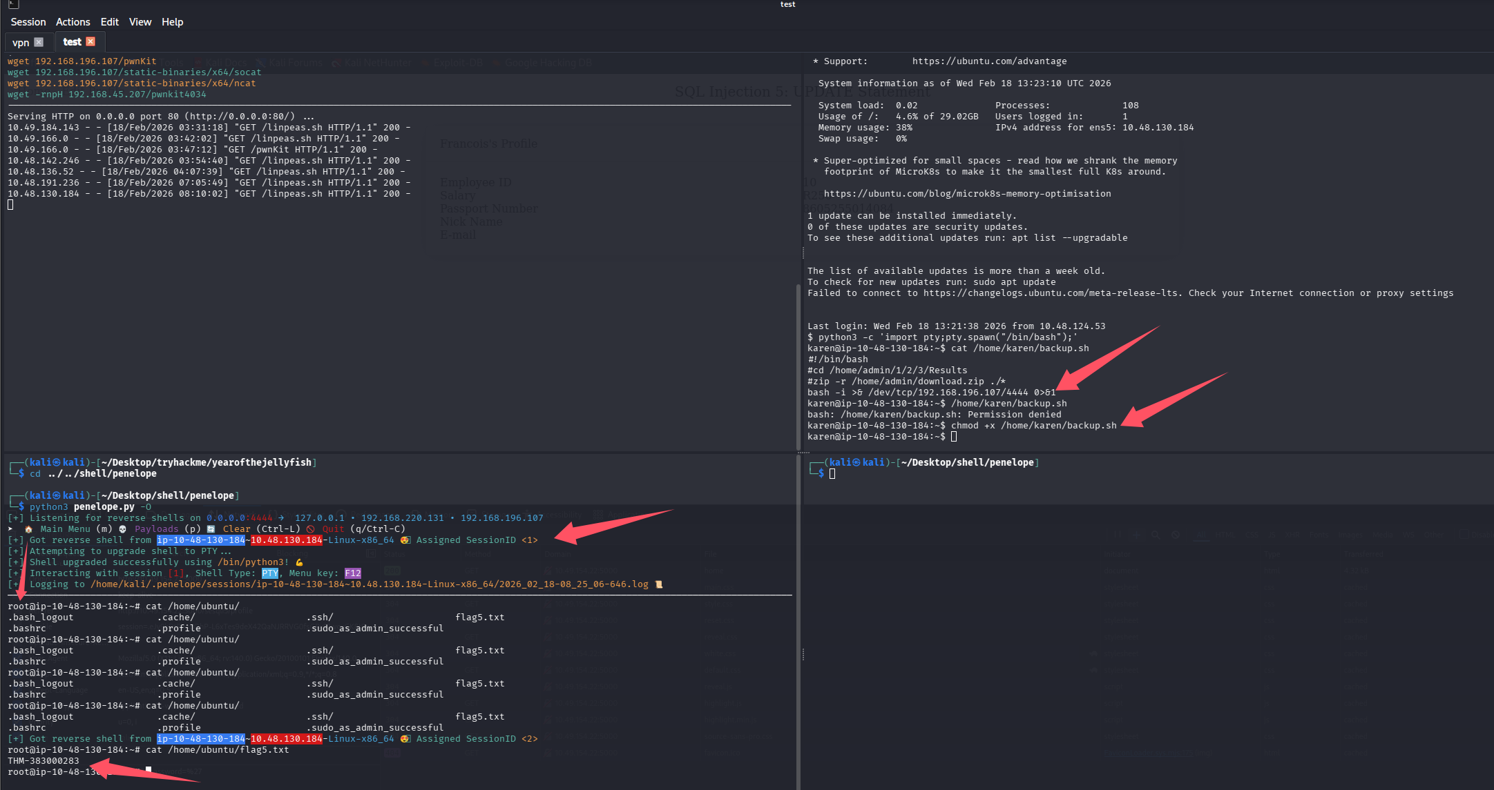 把 backup.sh 脚本换成反弹 shell 的,同时开启 penelope,这里有点小坑,backup.sh 默认居然没有可执行权限,手动给一下就好了