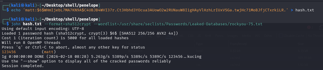 echo 'matt:$6$WHmIjebL7MA7KN9A$C4UBJB4WVI37r.Ct3Hbhd3YOcua3AUowO2w2RUNauW8IigHAyVlHzhLrIUxVSGa.twjHc71MoBJfjCTxrkiLR.' > hash.txt