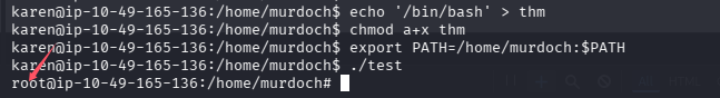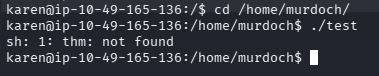 提示我们找不到 thm,猜测脚本在调用 thm,尝试进行路径劫持