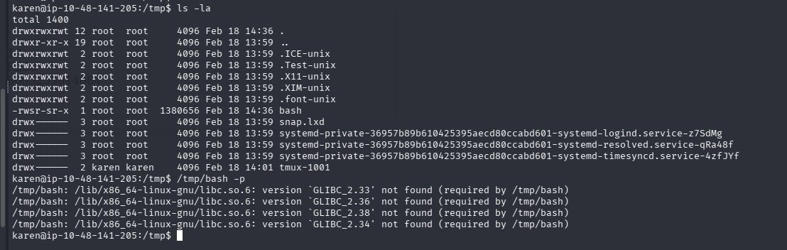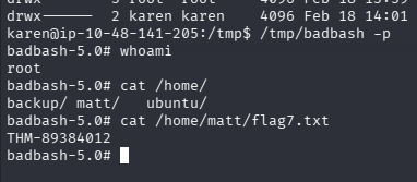 - 这个房间感觉主要是复习一下之前学到的 linux 提权方式,不过也有一些在 linux 单机题单内没学到的知识点,比如 nfs+no_root_squash 可以创建 SUID 程序完成提权,需要注意的是,必须是可执行程序,shell 脚本不行,不想编译的话可以用靶机 shell 拷贝一个 bash,然后再 kali 上挂载目录,以 root 权限再拷贝一边改变属主,再加 SUID 权限,即可完成提权