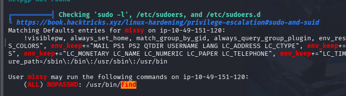 拿到新的凭证:missy/Password1,切换用户,再跑一边 linpeas